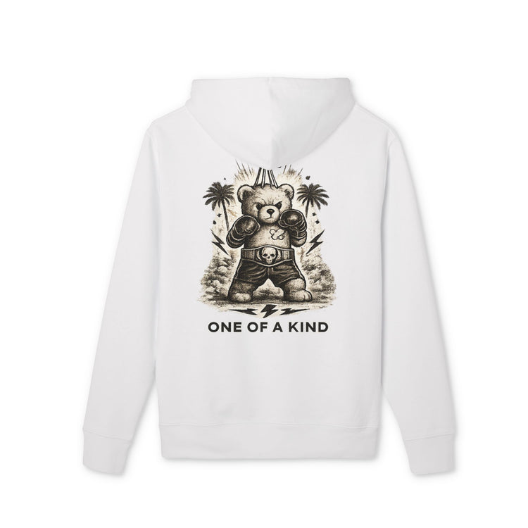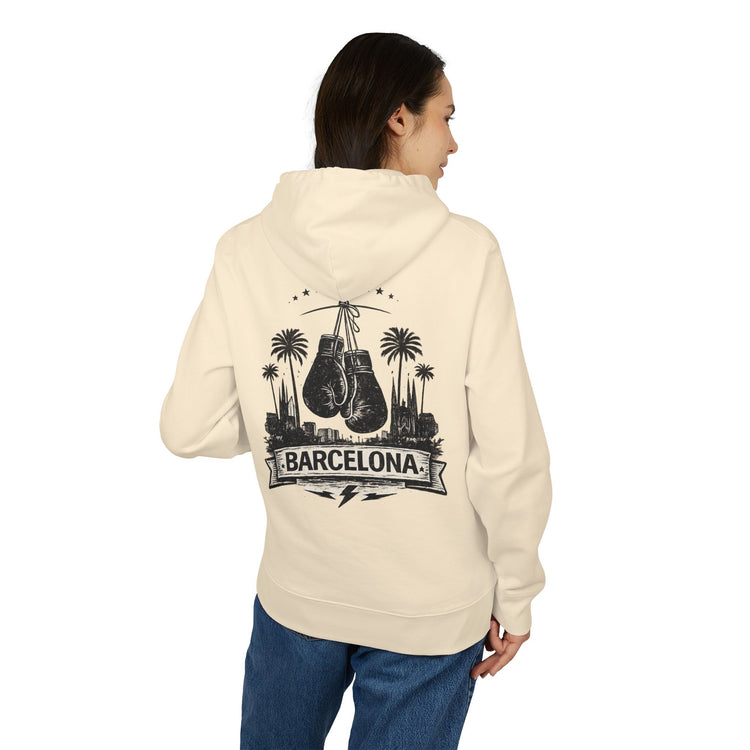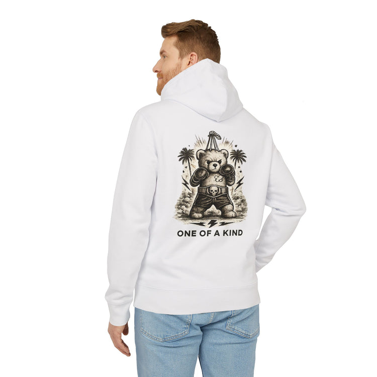 A crescent moon detail in the same fabric at the nape of the neck accentuates the hoodie's premium look, while the kangaroo pocket on the front adds a classic touch. This hoodie is the perfect blend of sustainable materials and thoughtful design, making it an essential wardrobe staple.